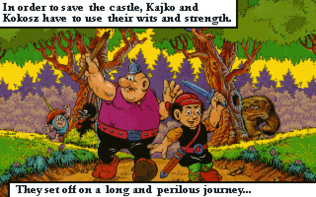 Рассказываемые игрой события берут начало в небольшой мирной деревеньке Mirmilowo. Однако положительную статистику крестьянских трудобудней изрядно подпортил обосновавшийся в крепости по соседству рыцарский отряд. Закончилось всё весьма плачевно - вода в деревенском колодце отравлена, жители в опасности. Спасать всех и наказывать обидчиков придется двум парням из народа, а имена этих героев - Kajko и Kokosz. Путешествие обещает быть долгим, но уж точно не скучным, - в программе приключений заявлены занятные персонажи и сказочные существа. Да и поломать голову всё-таки придется - несмотря на классический point&click. Во-первых, управлять придется сразу двумя героями, весьма непохожими друг на друга: следовательно, задачу, с которой блестяще справится один, нельзя будет доверить другому. Kajko - смышленый и ловкий, Kokosz - бестолковый, но сильный увалень; знание этих качеств героев будет как нельзя кстати при решении различных задачек. Ну а во-вторых - как и во многих старых (и не очень) квестах, не всегда бывает очевидно, что кому отдать и где предмет применить.