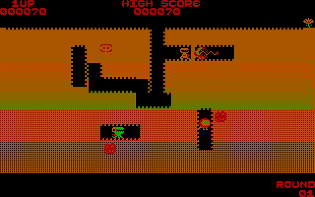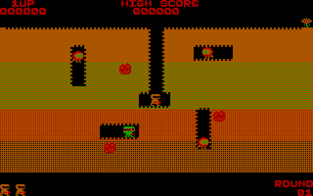 Иногда в том или ином месте экрана (чаще в его центре) появляются бонусы в виде фруктов (!), к которым можно прорыть ход и взять их для увеличения очков. Естественно, имеется несколько «жизней». «Цветы» в верхней правой части экрана обозначают номер уровня. Наконец, в игре присутствует и босс-дракон, который появляется не сразу, невосприимчив к падающим на него камням и убегает от вас от уровня к уровню.