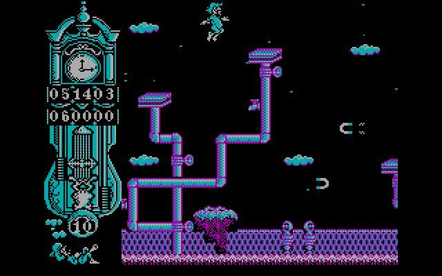 Первый уровень – «начало пути», состоит он из семи локаций. Действие здесь происходит как будто действительно в каком-то кошмарном сне: летающие платформы и ключи, пылесосы и руки без туловищ в качестве врагов (а также многое другое, о чём здесь писать не следует), а главное – огромное количество прыжков, которые предстоит совершить для прохождения этого эпизода. Двигаться влево можно с помощью клавиши O, вправо – клавишей P, прыжки осуществляются кнопкой Q.