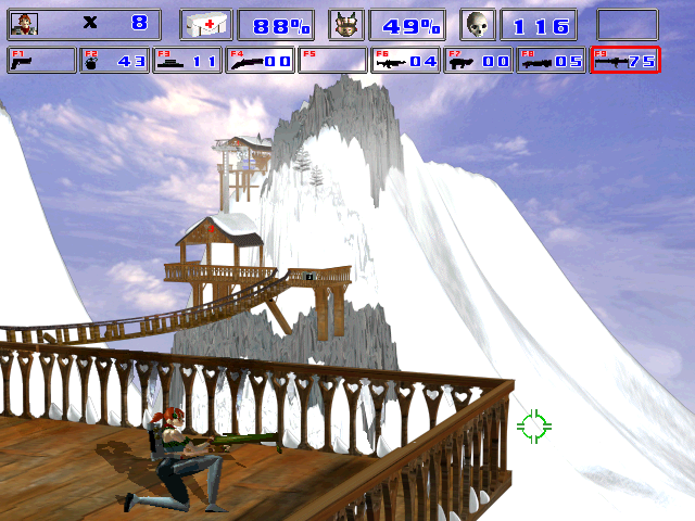 Но на самом деле это не так. Графическое исполнение – вот чем сейчас более всего ценна Guts ‘n’ Gurtners. Эта игра вышла в 1997 году и является, без сомнения, одной из вершин DOS’овского игростроения и одной из наиболее технически совершенных и красивых игр для данной платформы. Да, экраны здесь статичные, но качество их прорисовки может дать сто очков вперёд многим более поздним играм для Windows. Персонажи, все враги и предметы в игре выполнены в полном 3D. Вердикт – сейчас игра представляет в первую очередь историческую ценность, хотя поиграть в неё наверняка будет интересно всем, кто любит старые добрые аркадные стрелялки.