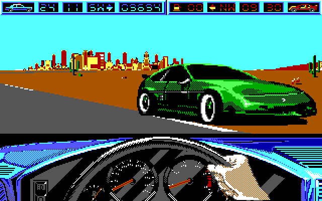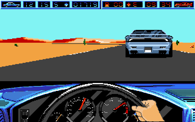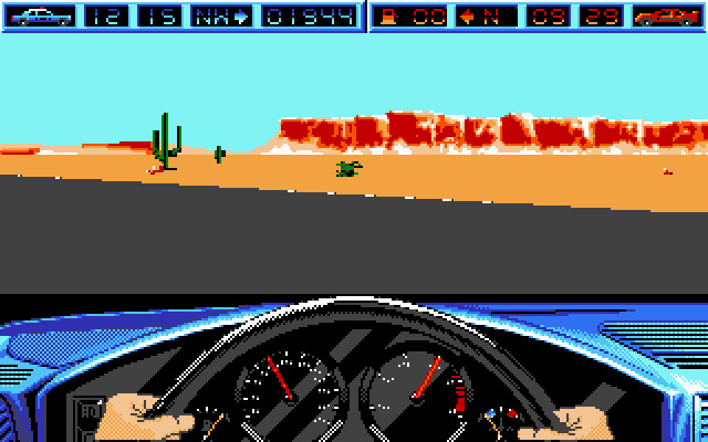 Естественно, что в начале гонки-миссии преступника мы не видим: для его поиска необходимо пользоваться радаром и картой местности. Наше поле деятельности вовсе не ограничено дорогой как таковой (то есть проезжей частью) – действие ведь происходит в пустыне, поэтому ни преступнику, ни нам ничто не мешает свернуть с дороги и отправиться в весёлые заезды по пустошам. Правда, это чревато многочисленными проблемами, ибо пустыня не столь безобидна, попасть в серьёзную аварию – ничего не стоит. Опасностей в игре вообще много, ибо она старается быть реалистичной настолько, насколько это возможно: бандиты могут стрелять в нас, шина неожиданно может сдуться (от попадания пули или другого повреждения), топливо – закончиться, а двигатель – перегреться. Ну и не забываем, что как только преследуемые пересекли определённый рубеж – мы уже бессильны.
