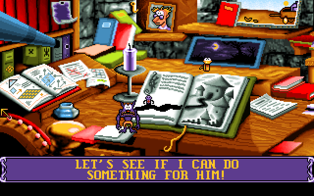 Стоит также заметить, что, традиционно для серии, одних только англоязычных версий у игры целых четыре! Американская CD - наименее примечательная: там вообще нет субтитров. В европейской CD они есть, но - голосовая озвучка всё же куда менее приятна, чем привычное "гоблинское бормотание" в родных дискетных версиях. Из последних я до конца проходил только американскую: похоже, всё её отличие от европейской - это отсутствие системы защиты от копирования. Ну а от CD, помимо куда более радующих слух музыки и "квазиозвучки", дискетные версии отличаются ещё и некоторыми текстуальными особенностями, а также наличием субтитров в межуровневых сценках. Правда, последних раза в два меньше, чем на дисках, - это ещё более усложняет дело отслеживания и без того едва уловимой сюжетной линии. Впрочем, как я уже заметил, сюжет тут - исключительно для галочки