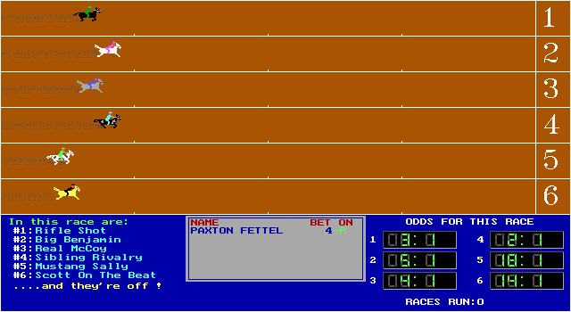 Симулятор скачек на лошадях, в котором игрок выступает не в качестве жокея, а в качестве того, кто хочет заработать на победе той или иной лошади: то есть нужно ставить деньги на ту или иную лошадь, и если она побеждает, то игрок получает на свой счёт больше, чем он поставил. Поддерживается режим для шести игроков одновременно, причём соперниками могут быть как компьютер, так и другие люди. Соответственно, в каждом забеге участвует всегда шесть лошадей.
