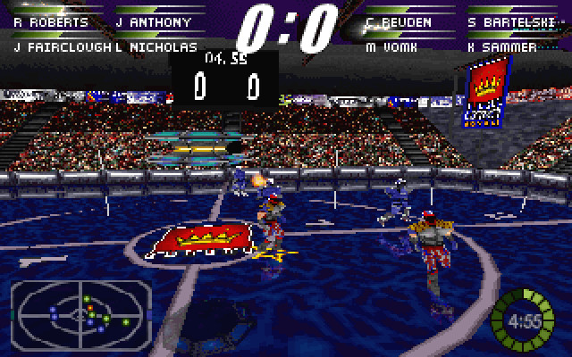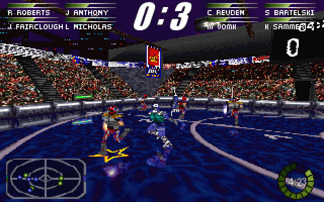 Суть игрового процесса в следующем. Формально игра напоминает смесь баскетбола и регби, но имеются и отличия. Есть игровое поле, две команды на нём и энергетический шар, которым они играют. Его надо забить в «корзины», которых тут две и которые находятся в центральных частях половин поля, - естественно, задача каждой команды состоит в том, чтобы забросить шар в «корзину» противоположной команды. Имеется три «зоны», означающие расстояния, с которых бросается шар; с чем более дальнего расстояния мы попали в цель – тем больше очков получили (соответственно, одно, два или три).