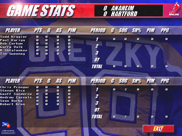 В игре имеется большое количество статистики – она показывается после каждого матча (причём по каждому его периоду) и предоставляет данные как по команде в целом, так и по (не)успехам отдельного игрока. Есть в игре и отдельный статистический режим, доступный из основного меню. Он интересен тем, что позволяет посмотреть реальную статистику по реальным командам и отдельным игрокам НХЛ сезона 1994/1995 годов. В нём показываются дата рождения, игровое амплуа, рост, вес, количество сыгранных матчей, забитые шайбы, голевые передачи, набранные очки («гол + пас»), штрафные минуты, броски по воротам и процент попаданий для каждого из игроков, причём доступна сортировка таблиц по каждой из характеристик! Следует отметить, что всё это в игре присутствует вовсе не только для познавательности, но и имеет важнейшее значение для игрового процесса, так как все эти игроки доступны для выбора их в ваши команды, поэтому знать, кто что может, крайне важно.