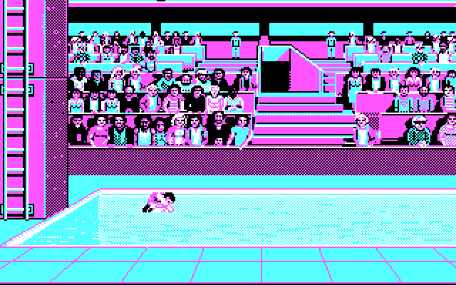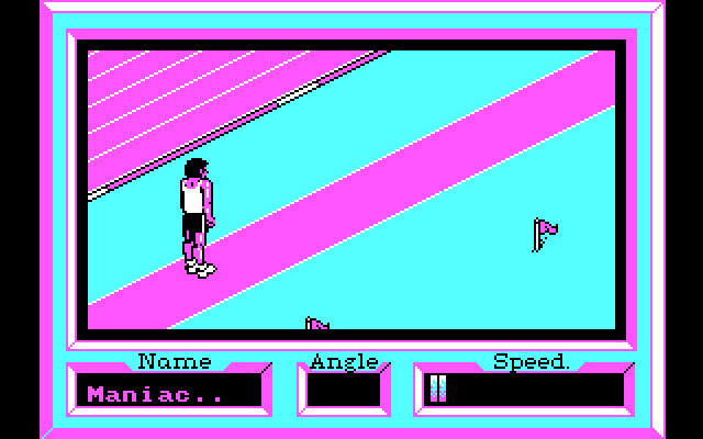 На выбор даётся несколько стран, за сборные которых мы можем играть (есть советская сборная!!!), и пять видов соревнований: прыжки в длину, стрельба, фехтование, бег с препятствиями и прыжки в воду. В прыжках в длину и фехтовании вид в изометрии, в прыжках в воду – сбоку, в стрельбе и беге с препятствиями – от третьего лица с сильным намёком на трёхмерность.