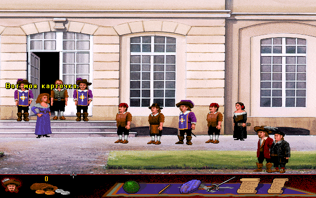 Несмотря на возвышенное начало, данная игра вовсе не является каким-то «благородным романтическим повествованием»: на деле перед нами очередной юмористический квест (или, во всяком случае, пытающийся таковым казаться). Жоффруа, конечно, не Манни Калавера или Гайбраш, но назвать его скучным, равно как и толковым, очень сложно, поэтому комичных ситуаций будет достаточно. Тем более что, как и полагается благородному мушкетёру, в своём неожиданном приключении он не один: за ним неотступно следует Анри, его слуга, - толстый коротышка, у которого на уме лишь две вещи: еда и выпивка (хотя и поворчать по поводу действий своего господина он тоже любит). Причём в самой игре как таковой роль его не так и велика – очевидно, он добавлен для «усиления» «комического» эффекта.