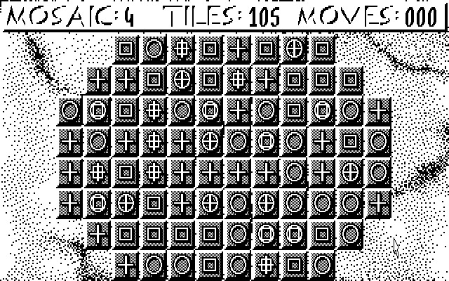 Общий смысл игры в следующем. Есть игровое поле, разделённое на клетки. В каждой из этих клеток лежит плитка определённого цвета (пока только трёх цветов – синего, красного и жёлтого) и определённым рисунком на ней (квадратом, кругом, крестиком и так далее). Ваша задача – полностью очистить поле от этих плиток. Делать это можно следующим образом: выделяем любую плитку – и нам чёрными кругами показывается на какое поле с другой плиткой её можно переместить. При этом само поле, с которого мы взяли выделенную плитку, очищается, а та плитка, на которую она ложится, либо остаётся того же цвета, если цвет у неё и у взятой нами одинаковый, либо перекрашивается (можно получить оранжевый, зелёный и светло-фиолетовый цвета из смешения первоначальных трёх, а затем – и серый).