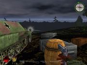 Экран информации о выбранном виде из камеры также состоит из двух частей: полоска слева показывает, через какую камеру вы осуществляете обзор в данный момент, равно как и её статус (в свободном она состоянии или прикреплена к роботу), полоска справа – что управляется главной камерой. И последний экран – это экран прицеливания, на котором показывается текущая цель и дистанция до неё с видом из выбранной на данный момент камеры. Прицеливание происходит автоматически, как только вражеский робот оказался в радиусе действия того или иного оружия; «захват» же цели - в два этапа: появляется сначала зелёная рамка (системы вооружения наведены на цель), затем красная (полное сопровождение), после чего уже выпускаются ракеты.