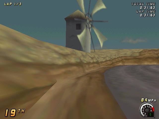Довольно стандартная аркадная гонка. Присутствует шесть различных трасс, причём на каждой из них доступен выбор направления маршрута (то есть условно можно считать, что трасс двенадцать).