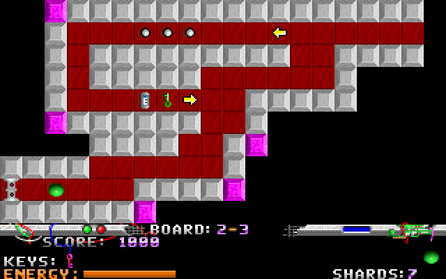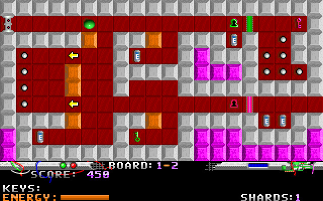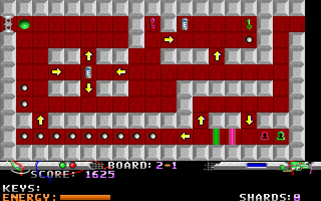 Энергия показана как оранжевая полоска в нижней части экрана и постоянно уменьшается. Первоначально жизней три. Есть бонусы в виде ключей, серебряных черепков и батарей. Батареи восстанавливают энергию, но до них надо ещё добраться. Серебряные черепки увеличивают общий счёт уровня, но заниматься их коллекционированием рискованно. Ключи – самая важная вещь: без них не преодолеть барьеры (какого цвета ключ – такой барьер он и разблокирует). Упомянутые выше отверстия – это клетки с дырами, наступание на такую клетку – мгновенная смерть. Ещё есть кнопки со стрелочками – при наступании на такую кнопку вас переместят без затрат энергии, но только туда, куда указывает стрелочка. В конце уровня всегда есть квадрат с буквой X, если на него встать – то можно получить пароль для этого уровня (что необходимо обязательно делать).