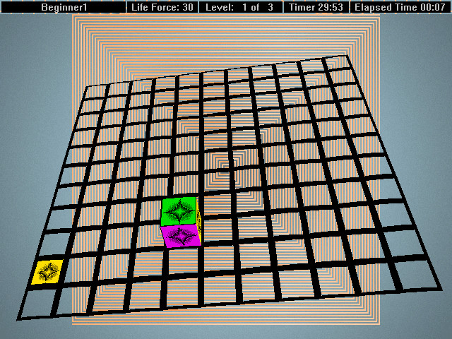 Игровой процесс осложнён многими вещами. Во-первых, управлять кубом, постоянно перекатывая его, чтобы верхней оказывалась нужная грань, довольно трудно. Во-вторых, целевые квадраты появляются только на время, а затем исчезают (а начиная с определённого уровня они начинают ещё и перемещаться по полю, как бы убегая от нас). В-третьих, и это самое неприятное, прохождение каждого уровня очень жёстко ограничено по времени: если за нужный срок мы не успеваем собрать необходимое количество «жизненных сил» - то игра заканчивается. Иногда несколько квадратов появляются одновременно, и тогда даже приходится «стратегически мыслить», чтобы правильно рассчитать последовательность и порядок движений к каждому из них. Как только все (или почти все – иногда бывает и так) появившиеся квадраты «впитаны» нашим кубом – можно переходить на следующий уровень.