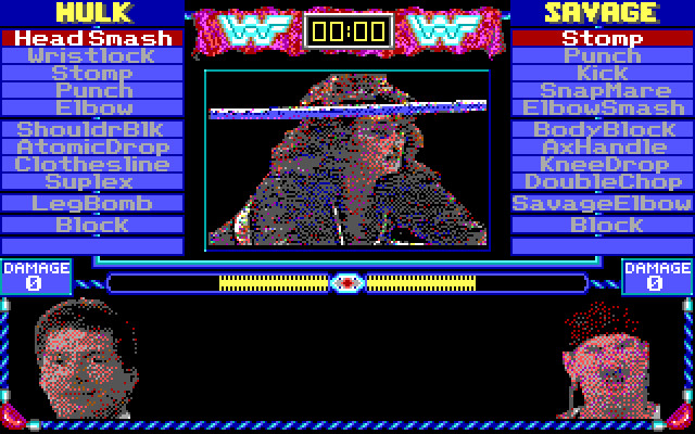 Графика в игре также очень необычная – EGA-палитра с очень крупными планами и высокой детализацией, но в «штриховом» стиле, из-за чего изображение выглядит несколько размытым. Однако с учётом того, что игра – фактически набор статичных кадров и небольших анимационных вставок, выглядит это всё очень здорово, тем более что все те, кого мы увидим на экране монитора, а это сами рестлеры и их менеджеры, исполнены не просто узнаваемо, а едва ли не фотореалистично. Вердикт – безусловно, невероятно интересная (в том числе даже для тех, кто вообще не любит спортивные игры), но очень сложная игра, браться за которую стоит лишь любителям основательно посидеть за изучением очередной хардкорной вещи.