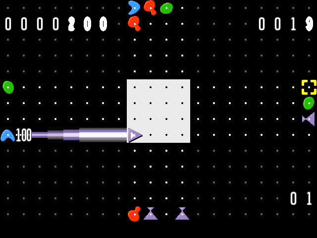 Задача треугольника – атаковать враждебные фигуры (он может это делать независимо от дальности их расположения). Все эти фигуры отличаются не только формой, но и цветом. Если треугольник атакует фигуру того же цвета, в который он окрашен в данный момент, то фигура уничтожается; если за ней находится фигура (или несколько фигур) того же самого цвета – то уничтожится вся линия. Если же треугольник атакует фигуру другого цвета или внезапно сталкивается с ней при уничтожении нескольких фигур одного с ним цвета, находившихся перед ней, - то только «обменивается» цветом с этой фигурой, то есть сам становится её цвета, а ей передаёт свой прежний.