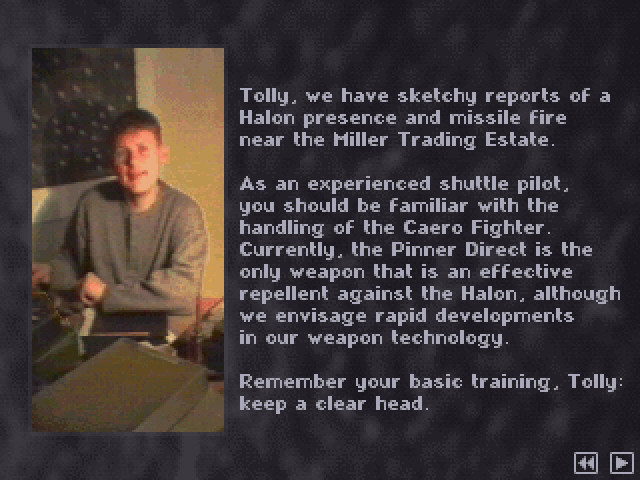Вы выступаете в роли некоего Толли, пилота города Дельфы, расположенного на тёмной стороне. Но, судя по постоянным сумеркам и красивому отблеску вечного заката, этот город находится всё же очень недалеко от терминатора планеты. То есть жить хоть и скромно, но можно. Ваши оппоненты – некие Галоны, имеющие постоянную «прописку» на освещённой стороне планеты. По причинам неких глобальных «затруднений» экологического характера они были вынуждены начать активно нести свои социально-культурные «ценности» в ваш родной город, а по сути - агрессивно завоёвывать и расширять себе жизненное пространство для дальнейшего существования. Ну, история, знакомая нам до слёз: «Неправильная, жестокая, милитаризованная и духовно недоразвитая раса вытесняет миролюбивую, скромную, трудолюбивую и правильную расу». В общем, теперь вся надежда города на вас, пилот…