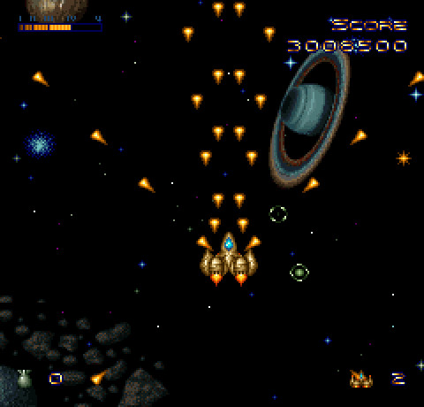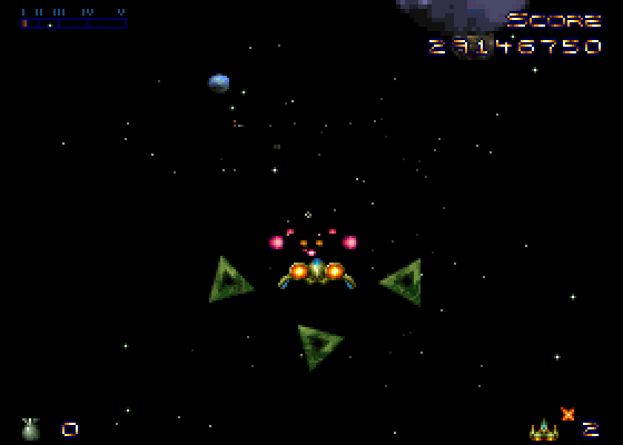 Красочный и относительно несложный космический сайд-скроллер, выделяющийся на фоне собратьев несколькими интересными особенностями. Как и во многих других представителях жанра, главной нашей задачей станет очистить Вселенную от всевозможных угроз путём их полного и бесповоротного уничтожения. В нашем распоряжении один-единственный истребитель, но его широких возможностей более чем достаточно для выполнения столь ответственного задания. Запустив игру и просмотрев красивый вступительный ролик, в котором показан наш пилот, проходящий через ангар и садящийся в кабину, мы попадаем... вовсе не на плоскость, как можно было бы ожидать от типичного сайд-скроллера. Первая же миссия демонстрирует нам трёхмерную перспективу с позиции за нашим звездолётом, что сильно напоминает сцены космических и планетарных перелётов из Creature Shock. Нос звездолёта всегда направлен в центр, и выпускаемые нами снаряды летят туда же. От игрока требуется вовремя уклоняться от приближающихся издали кораблей противника, а также метеоритов и всякого космического мусора, заодно пытаясь сбить всё, что попадётся на линию огня. Отлетав так минут пять, мы попадаем в зону космоса, где и находится главная цель нашего задания, будь то агрессивно настроенный флот, колония враждебных макроорганизмов или что-нибудь ещё. И вот здесь-то игра наконец и переходит в перспективу «сверху», превращаясь в классический shoot ‘em up (читай – «застрели их всех»).
