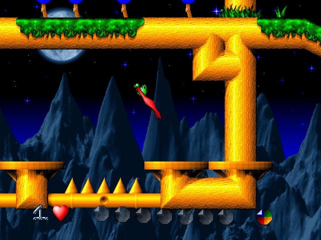 Под стать каждому уровню и враги на нём – разные для каждого мира. Сначала вам придётся иметь дело со злобными птицами, летучими мышами и пчёлами, затем их сменят живые (!) отбойные молотки и бетономешалки, на третьем уровне вашими противниками станут роботы, ну а в самом конце предстоит иметь дело опять-таки с совершенно неопределёнными созданиями – некими аморфными субстанциями разных цветов, более всего похожими на гигантских простейших.