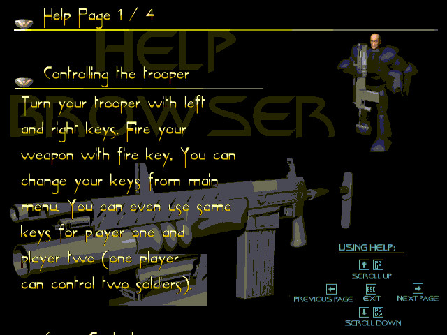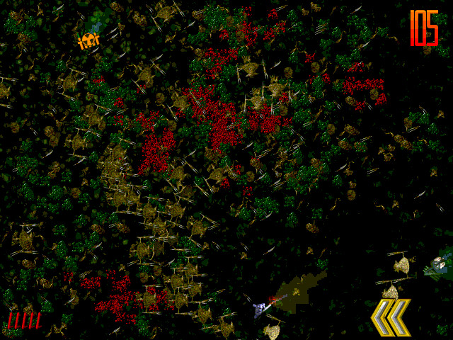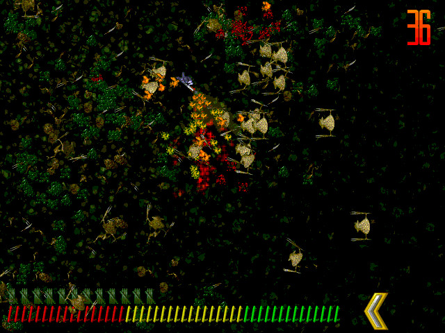 Есть базовое оружие – винтовка, также можно найти три дополнительных – огнемёт, кассетные бомбы и плутониевое ружьё (просто нечто!), и если грамотно им пользоваться – то можно за пару раз увеличить счёт на несколько тысяч очков. Задача – уничтожить как можно больше тварей и не допустить съедения ими вас. Точнее, рано или поздно это всё равно произойдёт, ибо тварей бесконечно много, но ваша задача – продержаться так долго, как только можно.