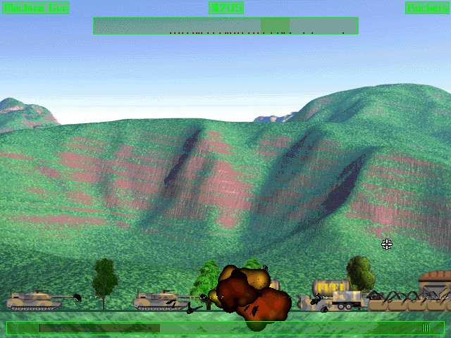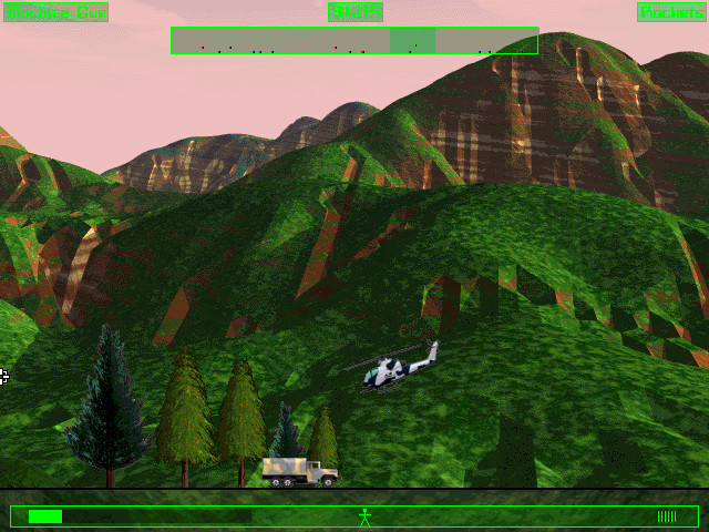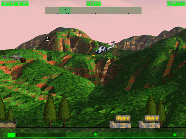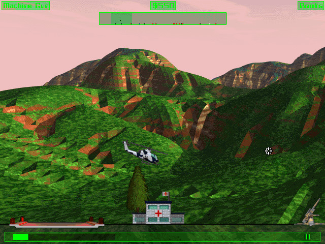 Игра, по сути, представляет собой аркадный «вертикальный» action, не имеющий с симуляторами ничего общего, так что управление здесь очень простое – только пять кнопок для движения (подняться, опуститься, развернуться влево, вправо, вокруг своей оси) и две для оружия (основного и вторичного). В верхней части экрана находится радар, на котором обозначены различные объекты и враги, а в нижней – шкала «здоровья» вертолёта, количество имеющихся боеприпасов и число людей на борту (есть только в некоторых миссиях, где вы спасаете заложников).
