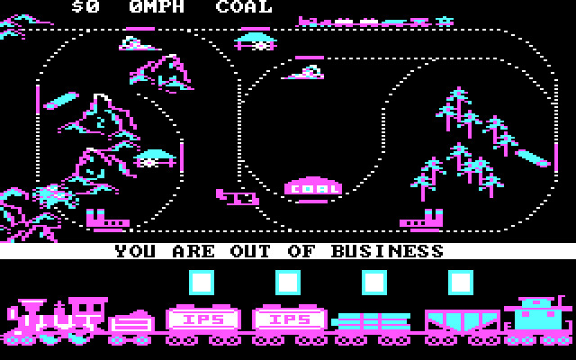 Графика в игре довольно условна – сам поезд увидеть очень тяжело, настолько мелко он нарисован. Тем не менее, каждый игровой уровень уникален – окружающим пейзажем могут служить леса, пустоши, горы, города и другие природные объекты (которые разглядеть вполне удаётся, да и нарисованы они в CGA-палитре неплохо). По мере выполнения заказов на уровне железная дорога удлиняется (ведь регион благодаря вам развивается) и постепенно доходит до края экрана; как только дошла – происходит переход на следующий уровень.