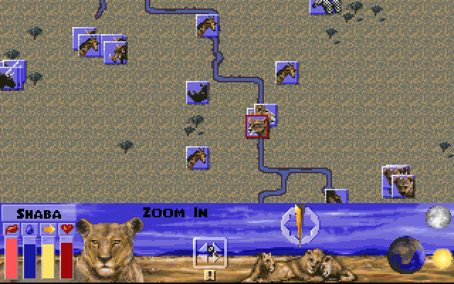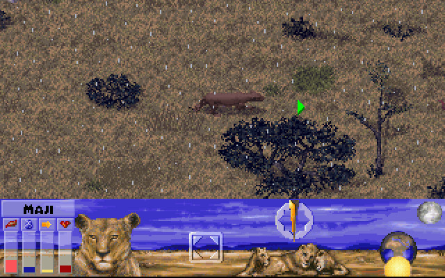 Чтобы следить за состоянием подопечного было удобнее, в Lion предусмотрены шкалы, отображающие потребность в пище, воде, отдыхе, уровень здоровья в целом. Кроме того, выходя на охоту, не забывайте пользоваться отлично развитыми у животных зрением, обонянием и слухом. Беззаботные прогулки по саванне ни к чему не приведут, поэтому если хотите выжить, привыкайте высматривать добычу издалека и подкрадываться к ней с подветренной стороны. Приходится внимательно следить, не напали ли Вы случайно на стадо, принадлежащее этим назойливым двуногим с коричневой кожей, – недостаточно расторопный лев, получив удар копьём в бок, уже не сможет подняться и ответить обидчику.