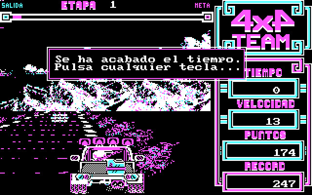 Больше же всего в игре удивляет графика. Здесь используется CGA-палитра, но в данном случае такое решение удивительно удачное – создаётся впечатление, что действие происходит ночью. Сама машина (которую мы можем увидеть во всей красе) прорисована просто с удивительным тщанием, а самое удивительное – здесь есть горы и даже небо с красивейшими облаками. Одним словом – просто отличная старая гонка, которая наверняка станет открытием (в том числе ввиду исключительной редкости) для всех ценителей старых образцов этого жанра.