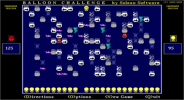 Есть игровое поле, внизу которого в ряд выстроились двадцать пять воздушных шариков игрока и ровно на том же месте – столько же шариков компьютера или другого игрока. Каждый ход полагается запускать по одному шарику, и чем выше он сумеет взлететь – тем большее количество очков получает запускавший (победителем становится обладатель большего количества очков). Но не всё так просто: на поле расположено множество препятствий, бонусов и прочих объектов (их расположение генерируется заново при старте каждого поединка), существование которых придётся брать в расчёт при выстраивании стратегии.