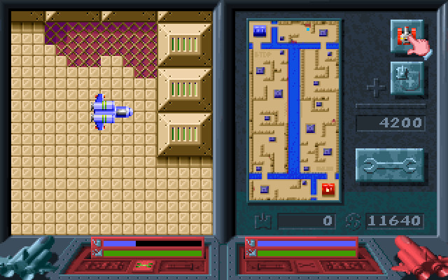 Любопытная «военная» аркада-стратегия тайваньского происхождения, чем-то напоминающая вышедшую три года спустя Return Fire. Конкретного сюжета у данной игры, слава Богу, нет, суть игрового процесса – две армии современности или недалёкого будущего, состоящие в основном из военной техники, воюют между собой. Конечная цель на каждом уровне (всего их здесь семь, причём сразу можно выбрать любой) – разгром основной базы противника. Несмотря на то, что формально перед нами фактически всё-таки аркада, её игровой процесс довольно сложен, а сама она – на китайском языке, поэтому он будет рассмотрен подробно.