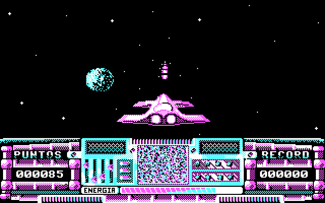 Игра испанская, поэтому управление здесь для привыкших к англоязычным играм будет не слишком привычным: клавиши O и P - перемещение кораблика влево и вправо соответственно, Q и A - перемещение вниз и вверх соответственно, пробел - огонь (боеприпасы бесконечны).