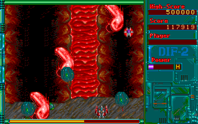 На традиционном китайском языке в игре идут только диалоги в межуровневых анимационных роликах. Возможно, это и имеет «глубочайшую» сюжетную составляющую, но в этой игре незнание великого и могучего иероглифа совершенно не мешает. Вы сами поймёте, что нужно делать, поскольку действо сводится к простой формуле: «убей всё, что шевелится». Отмечу, что такой формуле сильнее всего соответствует самый лёгкий уровень сложности игры, в котором рекомендуется «отрываться» и «выпускать пар» особо деструктивным личностям, не утруждающим себя сложными игровыми манёврами. Благодаря несущественности языковой составляющей игры в то время (1993 год) она стала известна и за пределами Азии, а теперь многие геймеры снова имеют возможность вспомнить те прекрасные годы благодаря этой замечательной космической стрелялке, представленной на нашем сайте…