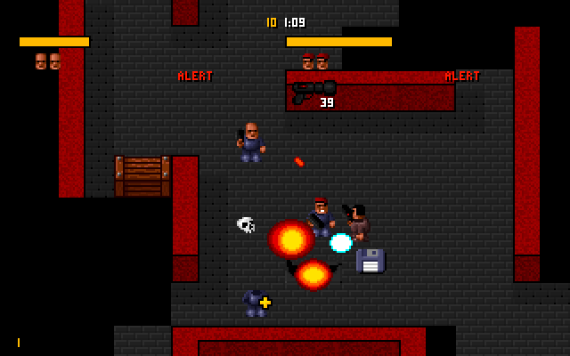 А еще у игры есть улучшенный "сиквел" под названием C-Dogs, о котором даже статья на английской википедии есть с ссылкой на сайт разработчика. Там в кампаниях есть подобие сюжета, враги разнообразней, есть шатающиеся компьютерные "союзнички" (как вооруженные, так и мирные), больше интерактивных объектов (взрывающинеся бачки, цветные двери с карточками и т. п.) и разных противников, больше разного оружия (гранаты, мины и пр.). Нет в ней только магазина: автор решил поменять концепцию, так что жизни и броня канули в лету, а игра ведется на очки, причем каждый промах очки снимает. И играть стало скорее даже сложнее, но и интересней. Даже странно, почему на добавлена Cyberdogs, а не она.