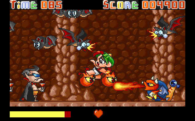 Мир Dokkaebi-ga Ganda разделен на различные области (горы, лес, деревня и т.д.), каждая из которых, в свою очередь, состоит из трех этапов (третий этап в каждой области - это битва с боссом). Уровни практически до отказа заполнены различного рода существами: змеи, кабаны и плюющиеся волки - это еще цветочки (да и боссы вполне себе адекватны - тигр, бык, чудовищно злобная ведьма). А как вам понравится граф Дракула в полосатых, простите, трусах и с бокальчиком крови? Или ходячий пенек, кидающий в вас яблоки, и злобный дедушка с клюкой? Это еще не предел! То количество врагов, которое каждый раз обрушивается на героя со всех сторон (еще и столкнуть с платформы могут!), не позволяет игроку расслабиться ни на секунду.