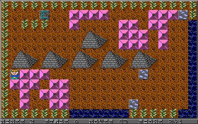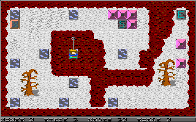 Что же представляет собой игровой процесс? Игра разделена на 26 стадий - каждая отдельный экран, где нужно нашего героя провести от точки старта к концу. Кажется, что может быть проще? Дело в том, что это надо сделать за определённое количество ходов. Один лишний шаг - и начинаем сначала. На экране расположены различные объекты (деревья, заборы и т. д.), которые надо обходить.