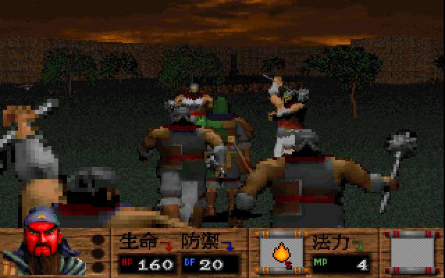 Много игр было выпущено про времена Троецарствия – не сосчитать. Это были периоды (III в. н.э.) войн и междоусобиц в Китае, когда идеалы благородства, бескорыстной дружбы и преданности были весьма востребованы в обществе. Вы можете выбрать одного из шести персонажей, которых зовут Кун Мин (孔明), Хуан Чжун (黃忠), Чжао Юнь (趙雲), Гуань Юй (關羽), Чжан Фэй (張飛), Гуань Фэн (關鳳) - кстати, она девушка. Все они являются воинами армии Лю Бэя (劉備). У каждого из персонажей есть свой набор индивидуальных параметров: здоровье (生命力), выносливость (防禦力), магия (法力), сила в нападении (攻擊力), носимое оружие (武器), ловкость (敏捷). Из носимого оружия каждый предпочитает что-то своё: меч, копьё или лук. Очень интересной особенностью игры является вот что: на следующий уровень вы можете выбрать снова любого из шести персонажей, а топология связи переходов между уровнями задана прямо на карте Китая, где каждый уровень соответствует реально существовавшему древнему городу. Уровней всего 14. В зависимости от результатов вашего прохождения игра может закончиться разными вариантами: на севере в царстве Вэй (властитель – жестокий Цао Цао) либо на юго-востоке – в царстве У. Точки местоположения двух уровней (5 и 6) находятся на берегах Янцзы, что, кстати, намекает нам на решающую Битву у Красной Скалы. Может, вы тоже сможете принять там участие. Да, всё, что связано с Троецарствием, авторы в достатке заложили в эту игру.