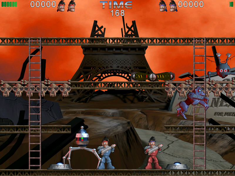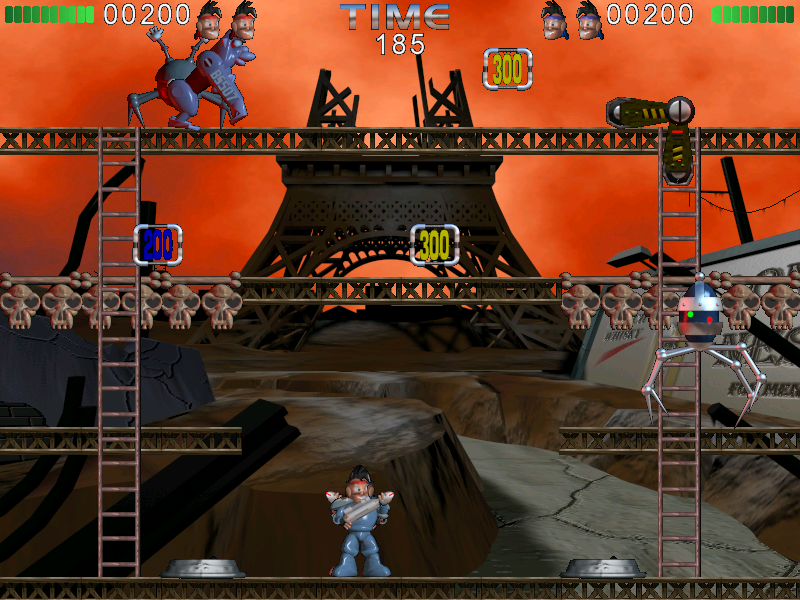 Однако иногда бывает так, что какой-нибудь робот даже поднимется за героем по лестнице. И здесь сразу стоит отметить, что в игре разрушаемо почти всё - ничто не мешает вам обрушить выстрелом пол под ногами врага, чтобы он провалился на «этаж» ниже. Но даже несмотря на то, что каждый уровень – всего один экран, играть всё равно очень и очень тяжело, прохождение некоторых моментов – сущая пытка. Разумеется, в игре есть различные бонусы, а также огромные роботы-боссы (они являются единственными противниками на «своих» уровнях, но бороться с ними трудно).