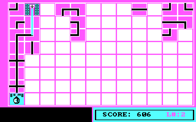 Внешне она почти неотличима от Main Break: опять задача по прокладке водопровода, всё та же предельно лаконичная CGA-графика, всё то же разделённое на клетки поле с источником воды и мешающими прокладке труб клетками-препятствиями, полоска таймера слева… Однако в нижней части экрана нет очереди из участков трубопровода, а единственный его элемент ползает влево и вправо по нижней границе игрового поля. Управлять этими перемещениями надо с помощью клавиш Z (движение влево) и X (движение вправо). Нажатие клавиши «пробел» отправит элемент трубопровода вверх, где он остановится, когда упрётся в верхний край игрового поля, препятствие, другой элемент трубопровода или источник воды. Вот таким «тетрисоподобным» способом и предстоит строить трубопровод. Увидеть сегмент трубы, который появится следующим, невозможно. Вместо части трубопровода может появиться бомба, с помощью которой можно уничтожить один ненужный сегмент (бросив бомбу на этот сегмент - совершенно так же, как и часть трубы). Части трубопровода с уже текущей водой уничтожить нельзя. Ещё реже, чем бомба, вместо участка трубы появляется квадратик со знаком вопроса, который после броска и остановки трансформируется в какой-то элемент трубопровода или бомбу.