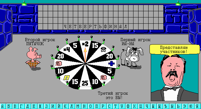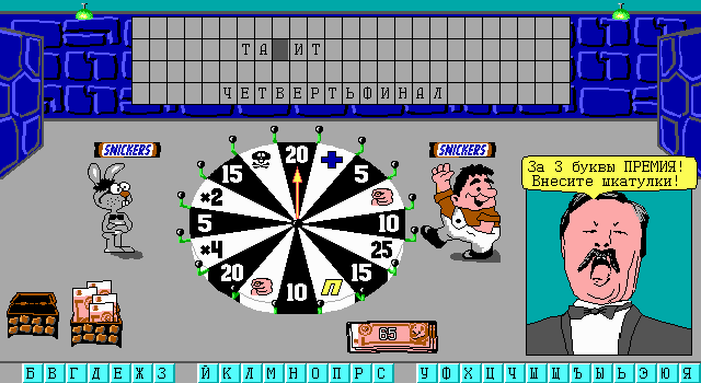 В том случае, если вы проспали эпоху «подтяжек для носков и кругов для унитаза», не смотрели «Поле Чудес» по пятницам и не понимаете, о чем идет речь, то стоит пояснить, с каким же явлением мы имеем дело. Суть игры следующая: троим соперникам необходимо по буквам угадать загаданное ведущим слово, используя для этого вращающийся барабан, разделенный на секторы. Большая часть содержит то количество очков, которое вы получаете за отгаданную букву, но некоторые могут отобрать у вас право хода (пропуск хода, потеря всех очков) или, наоборот, дать больше возможностей, чем у ваших соперников (например, сектор «Плюс», позволяющий открыть любую букву в слове). Отдельно хочется отметить сектор «Приз», который и в телевизионном шоу вызывал множество улыбок (когда игрок мог выбрать приз вместо предложенной взамен приличной суммы и получить связку бубликов), а в игре стал практически ключевым юмористическим моментом: выбранные вместо миллиона рублей (да, Леонид Аркадьевич невероятно щедр) призы отличались оригинальностью и всегда вызывали снисходительную улыбку.