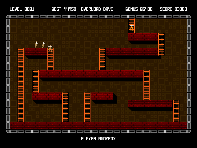 Задача состоит в том, чтобы собрать всё на уровне и по появившимся упирающимся в потолок лестницам (если таковые не имелись там с самого начала) выбраться наверх за пределы данной карты. Игрок бегает чуть быстрей оппонентов, которых в каждой миссии, кстати, может и не быть вовсе - но чаще всего от одного до четырёх. Любой уровень состоит из неразрушаемых, фальшивых (через которые герой проваливается) и временно разрушаемых кирпичей перекрытия, а также перекладин, по которым можно перебираться на руках (что не мешает попутно разрушать части пола, если таковые попадаются под ногами). Так же, как и в классической игре, можно разрушать кирпичный пол слева и справа от себя, причём кирпичи восстанавливаются. Иногда при разрушении кирпичной стены встречается сюрприз в виде скрытого врага: если заманить оного в яму, можно будет получить дополнительный бонус стоимостью в 10000 очков. Вообще, количество очков зависит также и от скорости прохождения уровня. Бонус с подсветкой даёт 8000 очков, если взят первым. Игра на редкость гуманна: если вы умудряетесь пройти уровень без попаданий в ямы оппонентов, то получаете 20000, а если всё же они в выкопанные ямы попадались, но не погибали там, то 10000. По итогам прохождения уровня ваши достижения могут быть внесены в таблицу рекордов, а также здесь осуществляется запись этого прохождения для всестороннего любования и беспристрастного анализа. В игру также встроены редакторы уровней и анимаций.