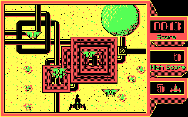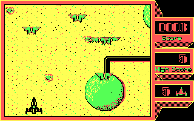 Графика в игре выполнена в CGA-палитре, но просто чудо как хороша. Причём перед вами ведь будет расстилаться не просто жёлтая пустыня (хотя жёлтый цвет в игре и доминирует), но и самые настоящие инопланетные красоты, вроде пустынных городов, редкой растительности, каких-то коммуникаций... Впрочем, с учётом динамичности и сложности того, что вас здесь ожидает, времени любоваться всем этим явно не останется.