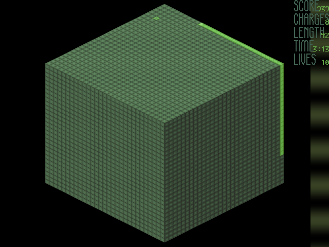 Игровое пространство уровня представляет из себя комбинацию соединённых между собой плоскостей. Начиная с трёх - на первом уровне, - их количество и сложность сборки увеличивается на каждом следующем. Вечно голодный питон перемещается по поверхностям, двигаясь в трёх независимых направлениях. Задачей перехода на следующий этап является сбор энергетических зарядов, периодически появляющихся на ограниченное время в разных местах. С каждым поглощённым объектом увеличивается длина пресмыкающегося. Когда собран весь урожай, открывается выход на следующий уровень (всего их 22, один сложнее другого). К преждевременной гибели змеи приводят столкновения с препятствиями или собственным телом, выход за границы и нехватка времени, отведённого на прохождение. Для изучения уровня можно использовать клавишу "T" – включение / выключение тренировочного режима, но сбежать с учёбы на следующий уровень не получится.