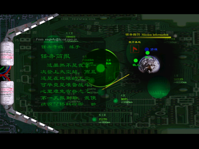 Меню осталось таким же футуристичным: всё те же шлюзы, засовы и лязганье, а музыкальная тема мотивирует игрока на подвиг. Теперь вы действуете не на поверхности планет, как в первой части, а в космосе. Вы можете сами достраивать модулями различного назначения вашу орбитальную станцию, которая по своей «разветвлённости» и «рогатости» чем-то напоминает нашу современную МКС. Все названия модулей продублированы на английском языке. Чтобы, например, производить роботов, нужно построить Robot Factory. Роботы могут быть как летающими с реактивными двигателями, так и «сухопутными» – просто они ходят только по поверхности вашей орбитальной станции. В дальнейшем на некоторые модули можно прилаживать охранные пушечки. Вокруг станции, как это и положено в компьютерном космосе, носятся астероиды. Маленькие – не в счёт. А вот большие… На них кипит какая-то работа, добываются ресурсы. Многие такие астероиды заняты противником. Ваша станция при помощи ионных двигателей может медленно перемещаться среди астероидов. Для этого нужно выделить самый главный модуль и указывать нажатием левой клавиши мыши примерное направление. При этом двигатели сами повернутся в нужную сторону. Разумеется, от столкновений с космическими глыбами постепенно ваши модули будут выходить из строя. Строительство осуществляется простой пристыковкой нового модуля в определенных точках станции. Новый строящийся объект поначалу представлен ярко-зелёным вэрфреймом, который постепенно обрастает текстурами. По окончании стройки женский речевой информатор доложит вам: 建造完成 [jian zao wan cheng] – строительство закончено. Если речевой информатор вдруг «затарахтит», как будто его заело, а в конце фразы зазвучит … 不足 […bu zu], знайте – у вас нехватка денежных средств. Первый индикатор вверху справа – это таймер времени, второй – ваш личный счёт, куда напрямую идут доходы от добычи ископаемых.