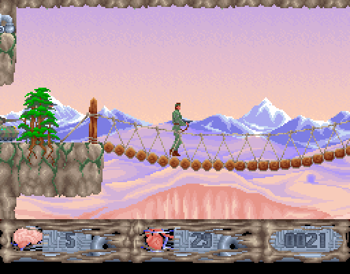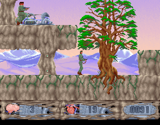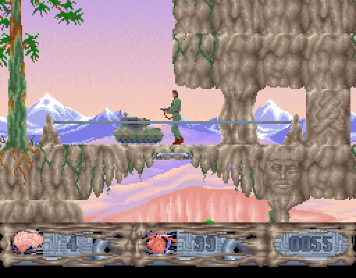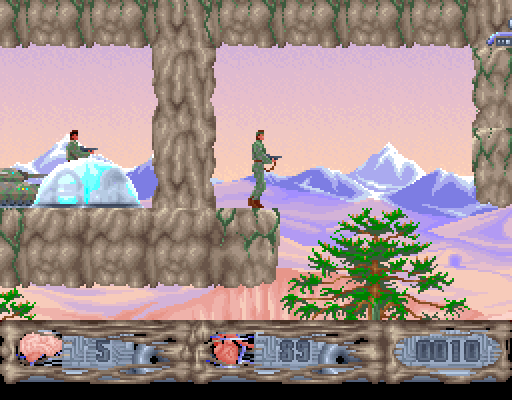 Сражаться с нацистами предстоит на протяжении трёх огромных уровней: сначала на потрясающих по красоте скалах, затем на секретной нацистской базе и, наконец, в собственно лаборатории, где гитлеровские недобитки разрабатывают страшное оружие. Необходимо восполнять боезапас автомата, отправлять в лучший мир одетых в немецкую форму ребят и миниатюрные танки (!), много прыгать, карабкаться по всевозможным откосам и вообще пересекать весьма опасные и сложные для покорения места. Отдельно хотелось бы отметить частичную разрушаемость окружения - без в буквальном смысле слова расстрела некоторых элементов пейзажа игру не пройти, и этим она до боли напоминает вышедшую позже на несколько лет Dark Angael.
