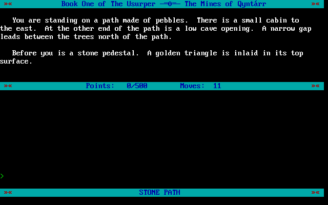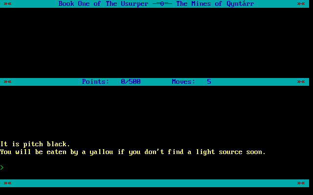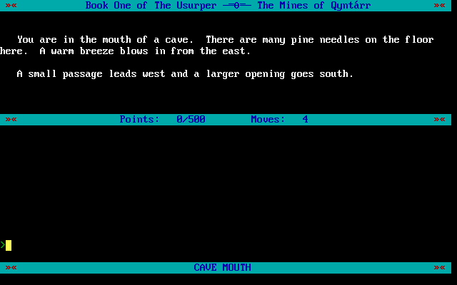 The Usurper: The Mines of Qyntarr стала последней изданной коммерческой игрой в жанре классического Interactive Fiction без каких-либо графических элементов. Она совсем не тянет на лебединую песню поджанра, вторична и скучна. Но она была, и вы можете с ней познакомиться сами.