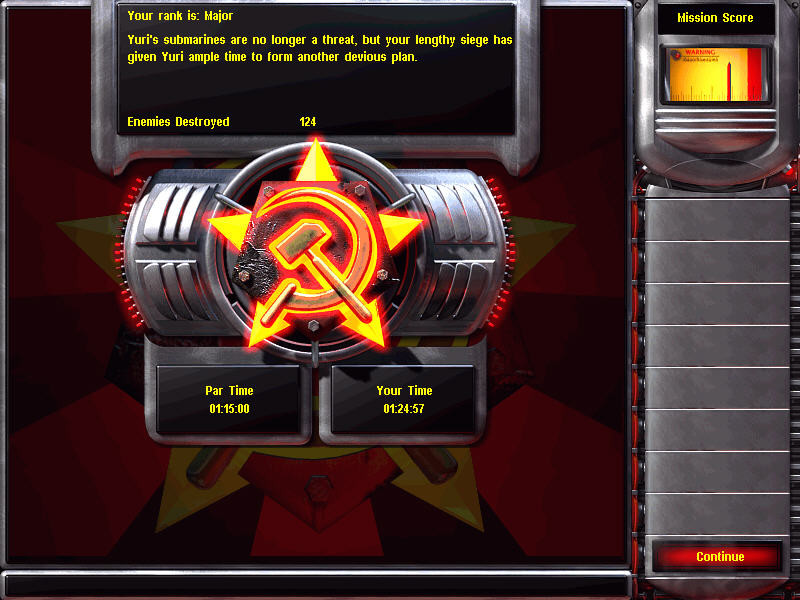Новых юнитов у Юрия масса, и все до единого чем-то выделяются (кроме легких танков, чуть быстрее и слабее союзнических). Здесь есть броневички с пулеметами Гатлинга, которые начинают стрельбу медленно, но разгоняются до сумасшедшей скорости и урона. Пара таких на полных оборотах довольно быстро "стачивает" даже дирижабль Кирова. Здесь есть похожие на Невероятного Халка мутанты в коротких штанишках, способные переворачивать танки. Есть наемницы, чьи пули-дротики устраивают во вражеских рядах эпидемию. Летающие тарелки умеют обесточивать вражеские базы, если доберутся до реакторов, и выкачивать деньги, если зависнут над переребатывающими заводами. Огромные мозги на танковой подвеске подчиняют телепатией сразу всех врагов вокруг, но перегреваются от собственной жадности. Магнетроны поднимают вражескую технику в воздух и подтягивают к себе, даже корабли. Проплывающий над какой-нибудь пустыней авианосец или дредноут незабываем, особенно перед тем, как его отпустишь и он разлетится о вдребезги о гору! У Юрия, к сожалению, только одно судно в флоте, но это мощные подлодки с ракетами. И так далее.