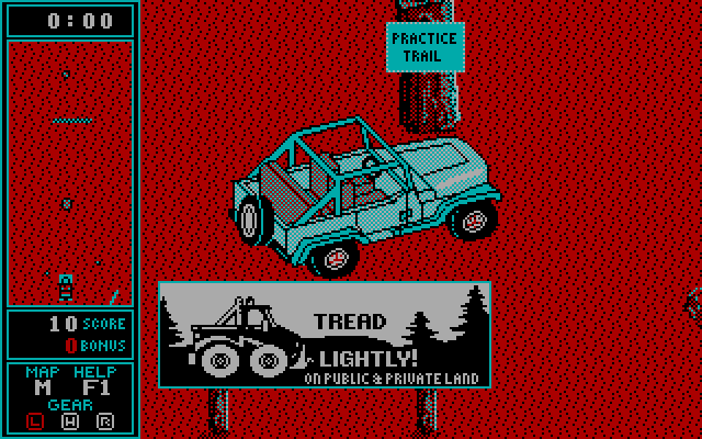 В левой части экрана расположена карта вашего маршрута с условным обозначением всех препятствий и вашего джипа в виде движущейся точки, но помогает она, увы, слабо. Отсчёт времени, за который вы должны преодолеть маршрут, идёт, но почему-то каждая секунда игры равна пяти секундам реального времени. Управление не слишком реалистичное, но передачи переключать можно (равно как и давать задний ход), а вот разгоняться - нет (но это и понятно). Разбить машину тоже, судя по всему, нельзя - когда вы сталкиваетесь с препятствием, вам просто пишут, что здесь не проехать и надо отыскать иной маршрут. Обратите также внимание, что вы управляете джипом, поэтому через мелкие камни и неглубокие канавки придётся именно что переезжать. Вообще, главная сложность этой, как бы парадоксально это ни звучало, медитативной игры как раз и заключается в понимании того, где можно проехать, а где нельзя.