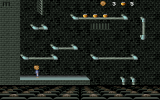 После начала игры - в камере - вы должны выбрать способ побега из неё. Нажатие стрелки вверх - герой побежит через вентшахту, стрелки вниз - через дыру под плитой в полу. И такое будет на каждом уровне - всегда можно будет пройти его двумя разными, хотя и похожими, путями. Играть чрезвычайно трудно. Архитектура тюрьмы убийственно сложна и состоит из маленьких платформ и бесконечных труб и лесенок, за которые придётся цепляться в прыжке. Уровни сравнительно крупные, причём в конкретный момент на экране показана лишь небольшая его часть; прокрутки экрана нет, при достижении границ экрана начинает показываться просто другая часть этой же локации. На уровень даётся всего три "жизни". Можно собирать бонусы в виде корзинок или чего-то подобного.