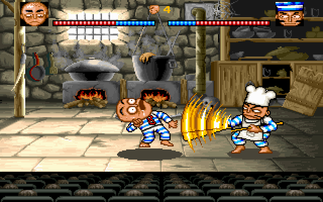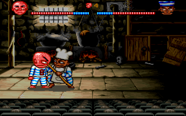 Файтинговая часть смотрится очень странно: вид в ней сбоку, масштаб куда крупнее, а запас здоровья что у нас, что у противника огромен. Правда, наш герой почему-то умеет "драться" только плевками. Выглядит подобное крайне утомительно и затянуто. Графика весьма качественная, есть целый ряд анимационных эффектов: вперёд герой не идёт, а воровски крадётся, приподняв руки, при подходе к обрыву он ни за что сам не идёт дальше и начинает в ужасе открывать рот, ну и так далее. Игровой процесс сопровождается необычной, но очень подходящей сюда музыкой: нервной и вместе с тем не раздражающей и динамичной.
