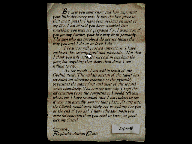 Трёхмерный квест от первого лица в стиле Myst, имевший оглушительный успех на платформе Macintosh и куда менее популярный на PC, хотя и положительно оценённый критикой.