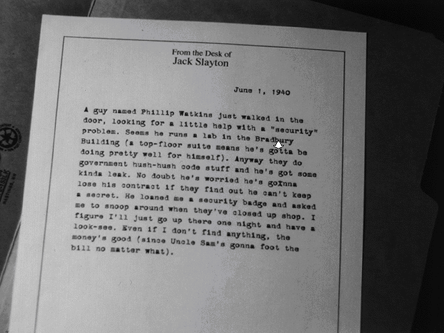 Нелинейность и отказ от использования интерфейса (есть только контекстное меню, откуда можно сохраняться, загружаться, изменить пару настроек и посмотреть файл справки по игре) приносят свои сложности: с чего начать, куда идти дальше, кто эти люди? Дневник, который всю игру лежит в офисе и к которому надо каждый раз возвращаться, помогает навести порядок в хитросплетении сценарных нитей, но лишь частично. Избранный стиль добавляет ложки... хмм… нуара — порой трудно разобрать, куда можно перемещаться, а куда нажать, — из-за того, что дело происходит глубокой ночью. Национальная федерация пиксельхантеров, безусловно, рекомендует, но без оглядки в прохождение я бы вряд ли сообразил, что на некоторых экранах есть активные зоны.