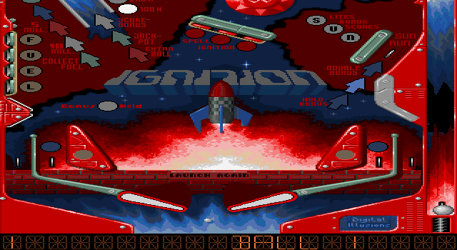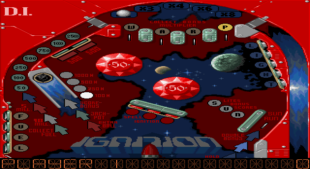 Например для первого стола Ignition, посвященному запуску космических кораблей: надо выполнить все условия, чтобы подсветить надпись IGNITION, затем забить мяч в ловушку и вы получите джек-пот.